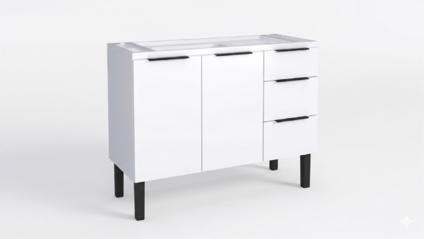 Pensado para pias de 1,20 metros, este modelo possui um excelente espaço interno, portas com acabamento duplo e uma exclusividade Cozimax: gavetas em Polipropileno (PP) virgem que não ressecam, não quebram facilmente e deslizam com suavidade.